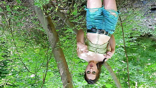 This cave is the brunettes favorite place for having an arousing outdoor anal sex