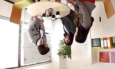 Slim Japanese female Boss seduce three worker to Group Hook-up in Office