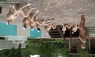 Synchronized masturbation of charming Chinese busty swimmers
