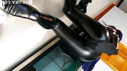 Fejira com - Leather catsuit restrain bondage ejaculation 01