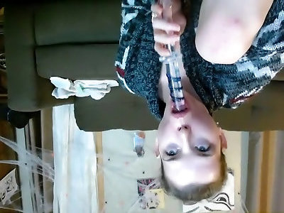 Nasty ginger-haired does a cuni to a all girl brown-haired