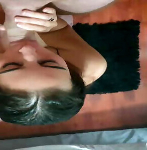 Facial Cumshot humungous blast after deep deep throat by real first-timer cumslut