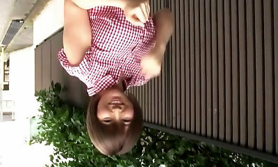Cute Japanese dame Rina Kato spurts on her knees to give a BJ