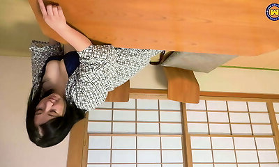 Slim woman, Miho Wakabayash is slowly screwing her lover