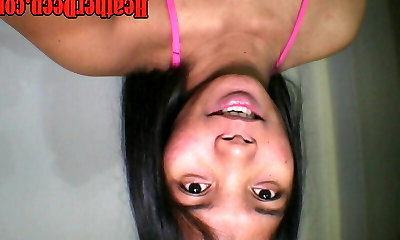Spoiled Jap maid's pussy lips pinned tight and toyed intensively in kinky vid
